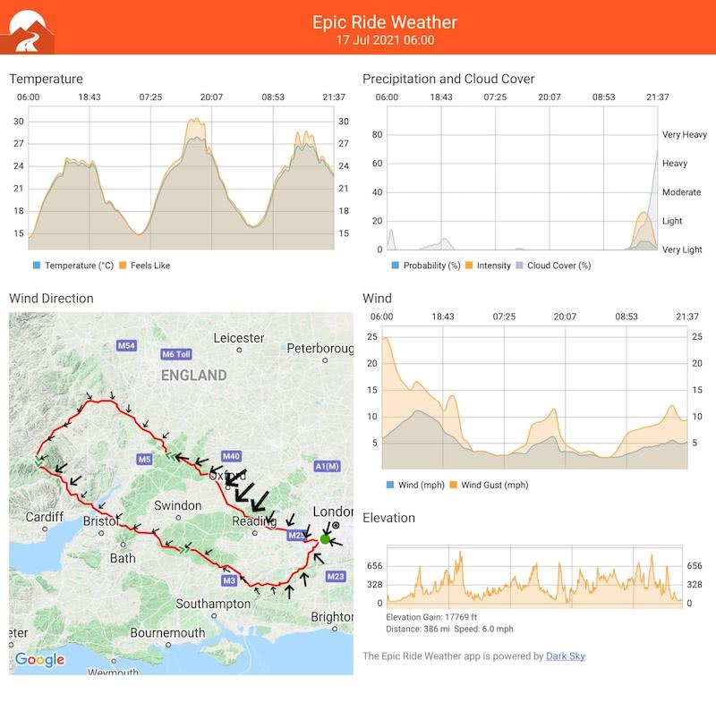 But last but not least was my least favourite event- the 400km. This is because at the speed we ride we go straight through the night, with a few minutes closed eyes on the side of the road… The weather was definitely looking more variable this time and even though we were riding this as a permanent event there was one weekend set aside in August where we could complete it and have enough for me to get back to work on Monday morning. Watching Epic Ride Weather like a hawk it was obvious the showers were going to be unpredictable but it looked like a best-case scenario in terms of strong winds: headwinds out, tailwinds back!
