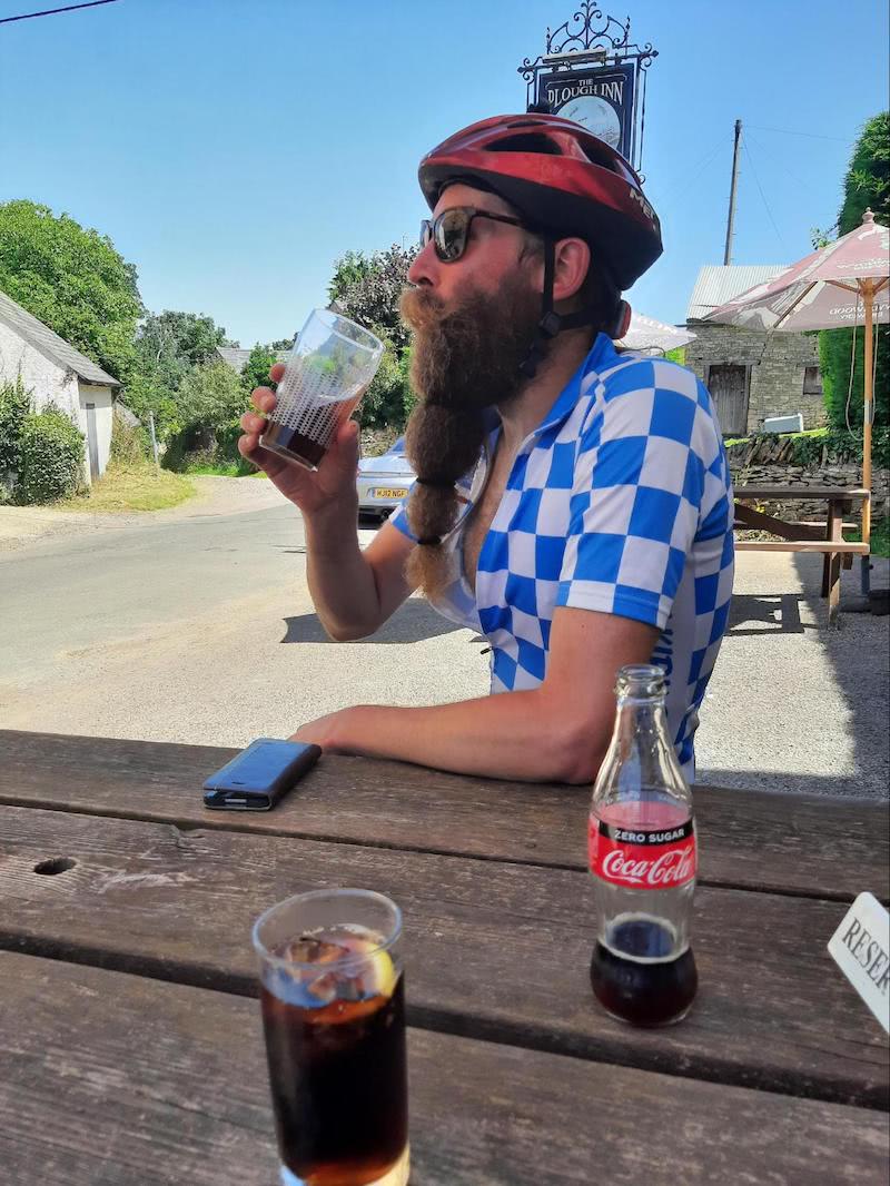 The next day was set to be another scorcher and soon water and fuel levels became a priority, as the heat hit its zenith my water bottle was onto its last dredges and I was melting in the heat. We made an emergency stop at a pub and cooled down with cool pints of diet coke and I surreptitiously cooled down in the ladies with wet paper towels. Refreshed enough we rolled onto the next village shop for pavement picnics of cold spaghetti bolognaise from a tin, crisps and pasties- hey you’ve got to go with your gut on these rides!